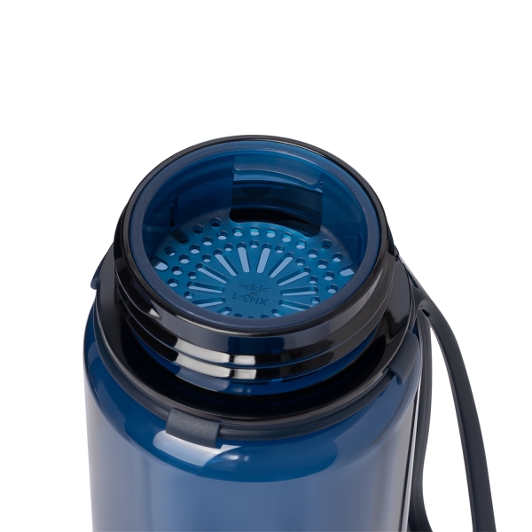 Прочная и легкая, она изготовлена из экологичного пластика без содержания БФА — идеально для тех, кто заботится о здоровье и окружающей среде. Удобная крышка с фиксатором клапана надежно защищает от протекания и случайного открытия, а ремешок-петля удобен для переноски — в спортзале и в повседневных делах.
