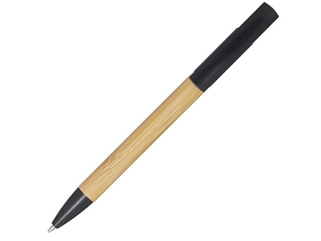 Бамбуковая шариковая ручка, которая также может служить подставкой для телефона. Кнопка и среднее кольцо изготовлены из переработанного пластика, наконечник — из латуни, а корпус — из бамбука, полученного из ответственных источников. Цвет чернил: черный. Длина непрерывной линии: 1000 метров. Размер пера: 1,0 мм. FSC certified bamboo. FSC Mix Credit N5 CU-COC-877277.
