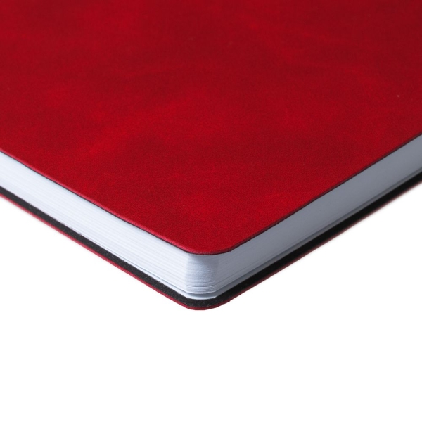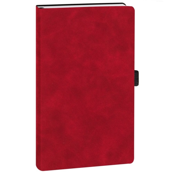Ежедневник с гибкой обложкой, выполнен из материала Nubuck Touch, красный РР, дополнен ляссе и петлей-резинкой для ручки черного цвета.