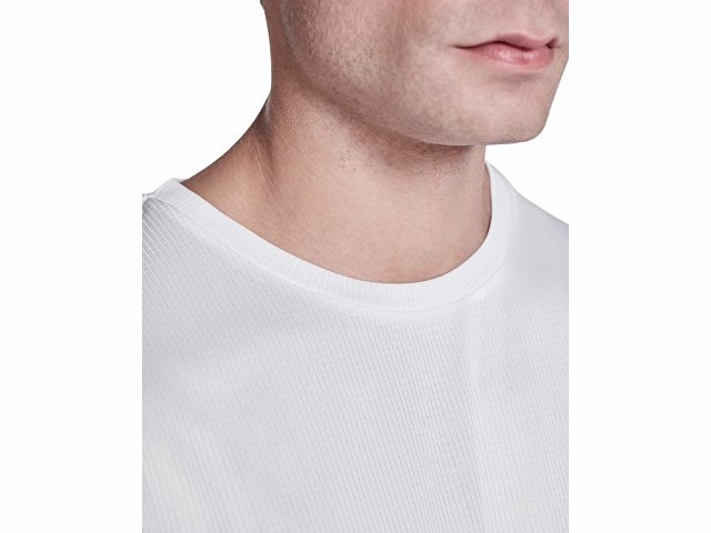 Мужская футболка с коротким рукавом из технологичного полотна. Отстрочки в тон. Спинка с удлинением. Боковые швы со смещением вперед.
