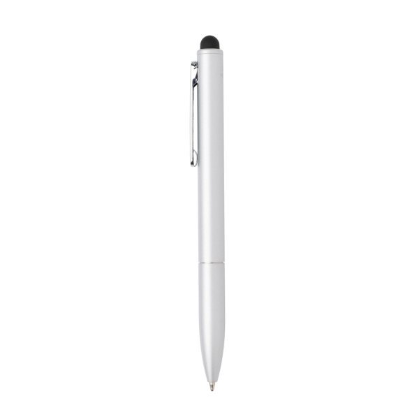 Ручка Kymi сочетает в себе классическую шариковую ручку и стилус для сенсорных экранов. Изготовленная из переработанного алюминия, она получилась легкой, прочной и приятной на ощупь. Такая ручка станет отличным подарком тем, кто заботится о природе: алюминий — уникальный материал, который можно перерабатывать бесконечно. Она удобно сидит в руке и обеспечивает плавное письмо. Стержня с синими немецкими чернилами Documental хватит на 700 метров письма. Сертифицировано RCS. Эта сертификация полностью контролирует путь поставок переработанных материалов и гарантирует их наличие в изделии.