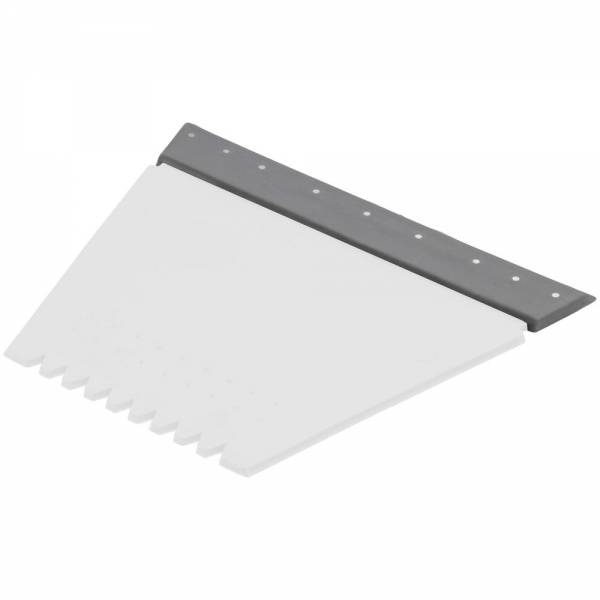 Скребок предназначен для очистки стекол и зеркал автомобиля от снега, наледи и воды. Все 4 стороны скребка рабочие: резиновый водосгон с широкой стороны, зубья-ледорубы с узкой и две скошенные грани по бокам.