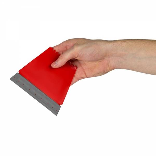 Скребок предназначен для очистки стекол и зеркал автомобиля от снега, наледи и воды. Все 4 стороны скребка рабочие: резиновый водосгон с широкой стороны, зубья-ледорубы с узкой и две скошенные грани по бокам.