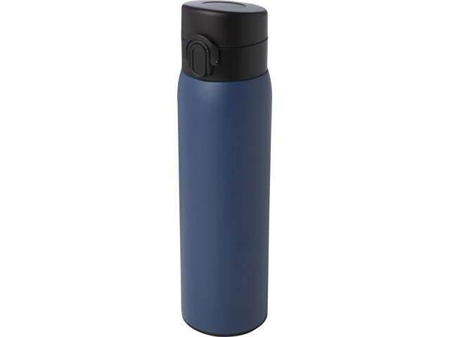 Стильная фляга-термос из переработанной нержавеющей стали, сертифицированная RCS, с простым механизмом открытия с помощью кнопки. Фляга герметична, а благодаря медной вакуумной изоляции напитки будут сохраняться горячими или холодными в течение нескольких часов. Объем составляет 450 мл. Поставляется в подарочной коробке из переработанного картона. Recycled stainless steel, Recycled PP Plastic. Packaging: FSC Mix Credit P5.1 CU-COC-877277.